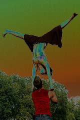 Sometimes she wanted to say to Lester-Douglas while being carried on his shoulders, "Ask be anything, ask me about the universe, about the creation of life, about death and suffering, ask me anything," but then she'd realize it was just the exhilaration she was feeling of being where she was and she didn't have the answers to anything. But it felt as though she did. Sometimes it was a sensation of the height being immeasurable, far beyond the feet and inches of two fairly regular sized human beings, one standing and one sitting; it began to be a sensation of stretching and breaking through to heaven in fairy tale books; of beanstalks or Pinocchio's nose growing; fast and dizzying and with a pop-slide sound, like she was on one level and suddenly she was shot to another, and there would be split-seconds of what she perceived was ultimate knowledge and clarification, and then nothing again, as when you rise into the air on a plane through sleet and rain and condensation, and have shuttered glimpses of radiance and light through a deep darkness. "Wonder what that was?" she would say, Lester-Douglas fixing a sandwich or making a cup of coffee underneath her.